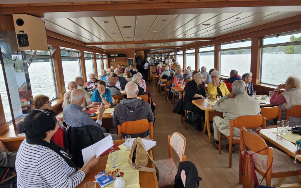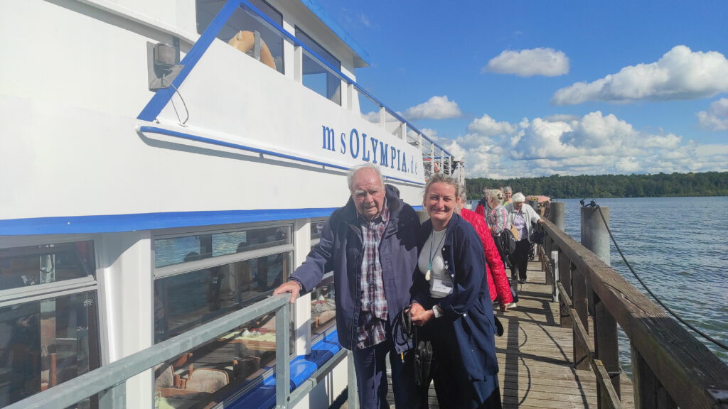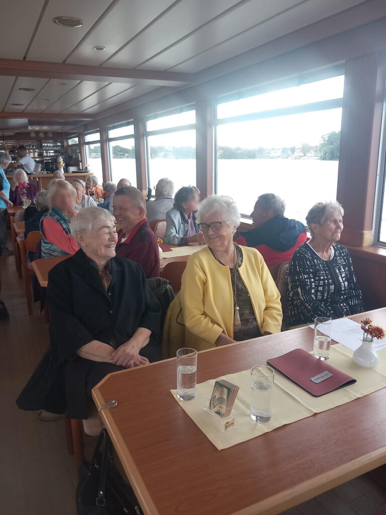 Vergangene Woche waren wir mit fast 50 Gästen der Tagespflege am Seddinsee mit dem Schiff MS Olympia auf der Dahme unterwegs. Drei Stunden lang konnten wir bei strahlendem Sonnenschein die schöne Aussicht aufs Wasser genießen, Lieder singen und auch mal mit einem Sekt oder Bier anstoßen. Nach einem Kaffee und einem leckeren Stück Kuchen sind alle Gäste mit einem Lächeln von Bord gegangen. Das Team der Tagespflege am Seddinsee hat vorher fleißig zusammen mit den Senioren gebastelt. So gab es für jeden noch ein Andenken an den schönen Ausflug: eine Kette mit einer Muschel.