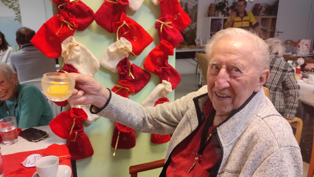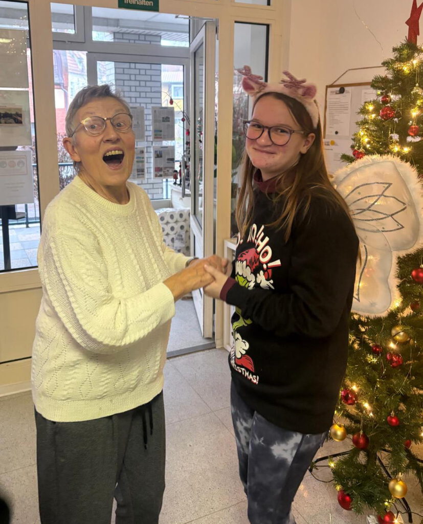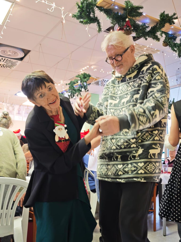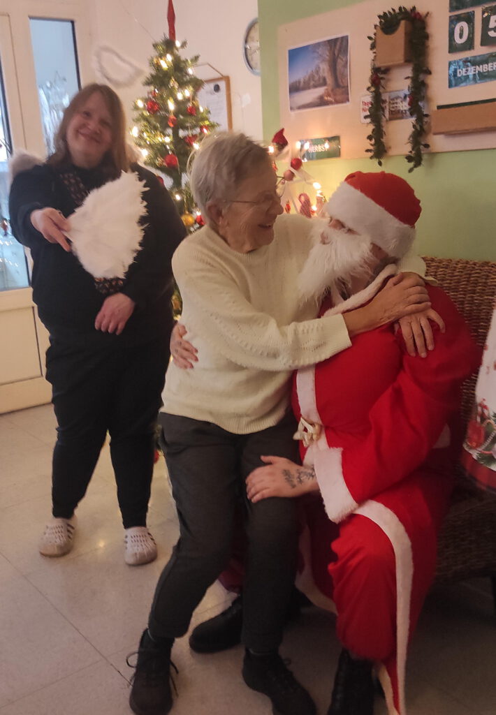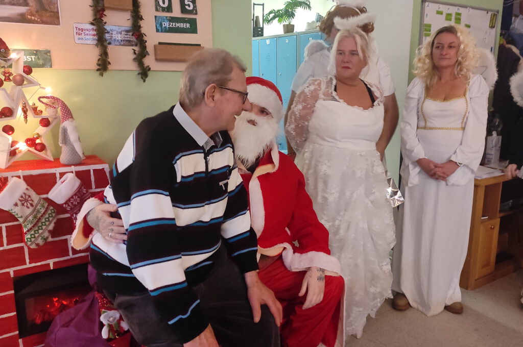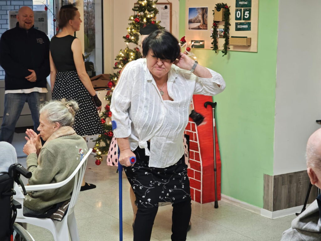 Am vergangenen Freitag haben wir mit unseren Gästen ein stimmungsvolles und fröhliches Weihnachtsfest gefeiert. Der Saal war voll: mit 60 Gästen haben wir gesungen, getanzt und gelacht. Einige Mitglieder des Kirchenchores aus Schmöckwitz waren zu Besuch und haben mit uns festliche Lieder gesungen. Die Mitarbeiter der Tagespflege hatten anschließend wieder ein abwechslungsreiches Programm vorbereitet: einen Sketch, eine Tanzshow zu Musik aus 50er / 60er und 70er Jahren und gemeinsames Singen mit Instrumenten. Unsere Gäste waren begeistert und konnten es kaum erwarten, als dann endlich der Weihnachtsmann kam – begleitet von seinen Engeln. Neben dem tollen Programm durfte auch ein besonderes Menu an diesem Tag nicht fehlen. Schon zum Frühstück gab es reichlich belegte Wurst und Käse Platten, Schmalzstullen, Eier und Lachsbrötchen. Das Mittagessen mit Kassler, Grünkohl, Rotkohl, Kartoffeln und Klöße ließ keine Wünsche offen, gefolgt von einem weihnachtlichen Dessert mit Spekulatius. Zum Abschluss haben wir dann einen leckeren Stollen zum heißen Kaffee serviert. Es war ein rundum gelungenes Fest mit vielen schönen Momenten und fröhlicher Stimmung.