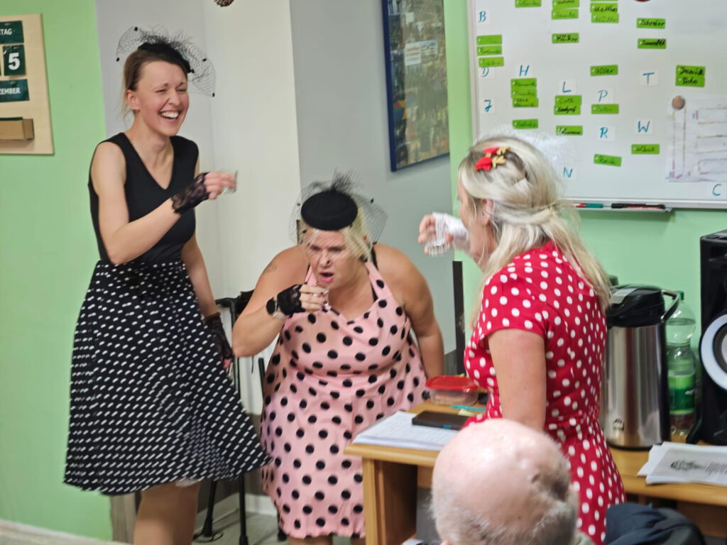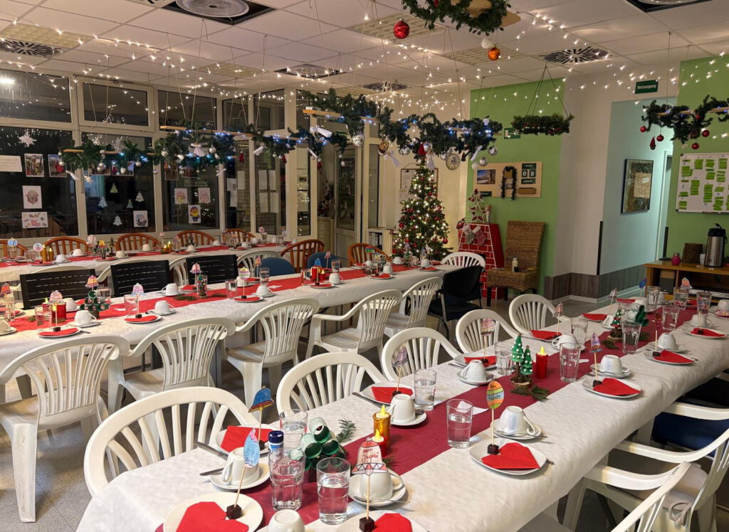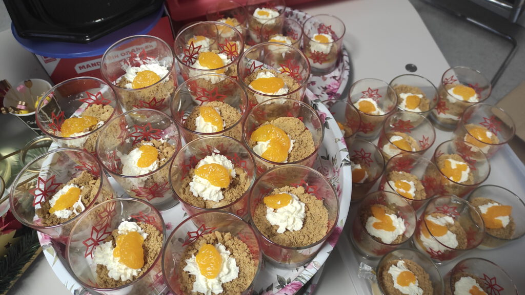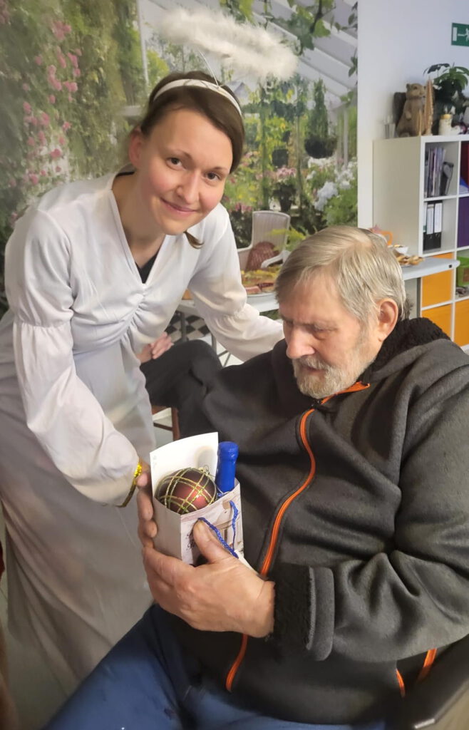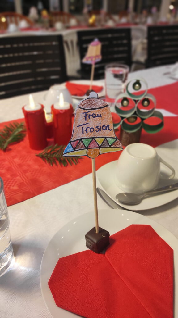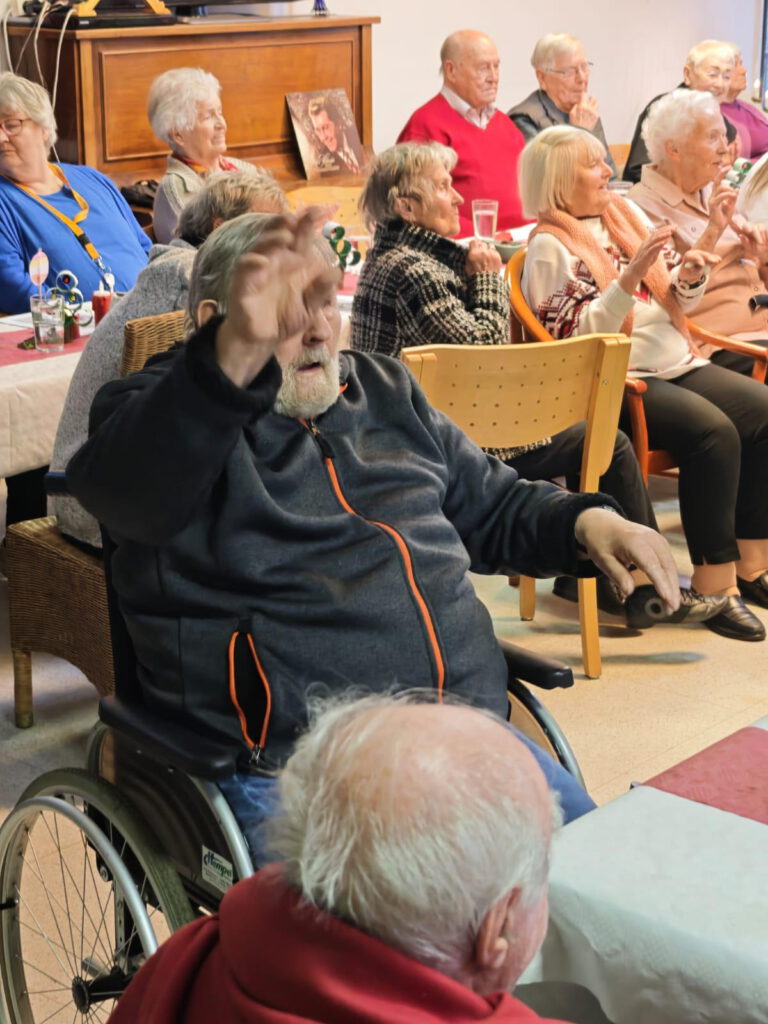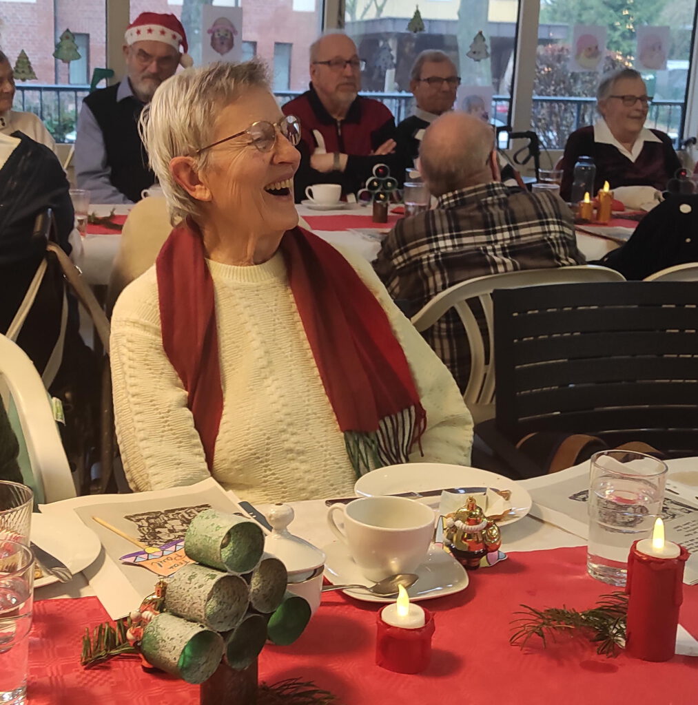 Am vergangenen Freitag haben wir mit unseren Gästen ein stimmungsvolles und fröhliches Weihnachtsfest gefeiert. Der Saal war voll: mit 60 Gästen haben wir gesungen, getanzt und gelacht. Einige Mitglieder des Kirchenchores aus Schmöckwitz waren zu Besuch und haben mit uns festliche Lieder gesungen. Die Mitarbeiter der Tagespflege hatten anschließend wieder ein abwechslungsreiches Programm vorbereitet: einen Sketch, eine Tanzshow zu Musik aus 50er / 60er und 70er Jahren und gemeinsames Singen mit Instrumenten. Unsere Gäste waren begeistert und konnten es kaum erwarten, als dann endlich der Weihnachtsmann kam – begleitet von seinen Engeln. Neben dem tollen Programm durfte auch ein besonderes Menu an diesem Tag nicht fehlen. Schon zum Frühstück gab es reichlich belegte Wurst und Käse Platten, Schmalzstullen, Eier und Lachsbrötchen. Das Mittagessen mit Kassler, Grünkohl, Rotkohl, Kartoffeln und Klöße ließ keine Wünsche offen, gefolgt von einem weihnachtlichen Dessert mit Spekulatius. Zum Abschluss haben wir dann einen leckeren Stollen zum heißen Kaffee serviert. Es war ein rundum gelungenes Fest mit vielen schönen Momenten und fröhlicher Stimmung.