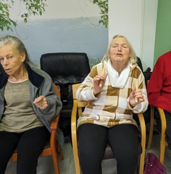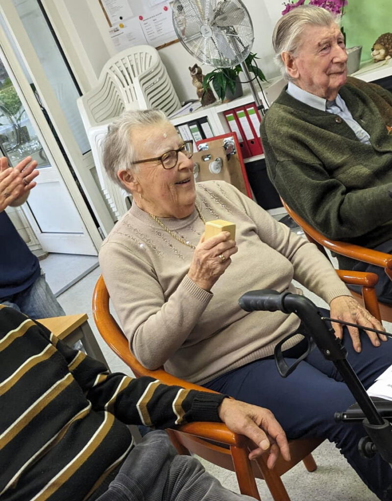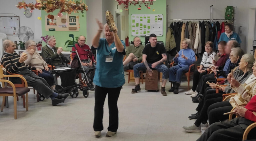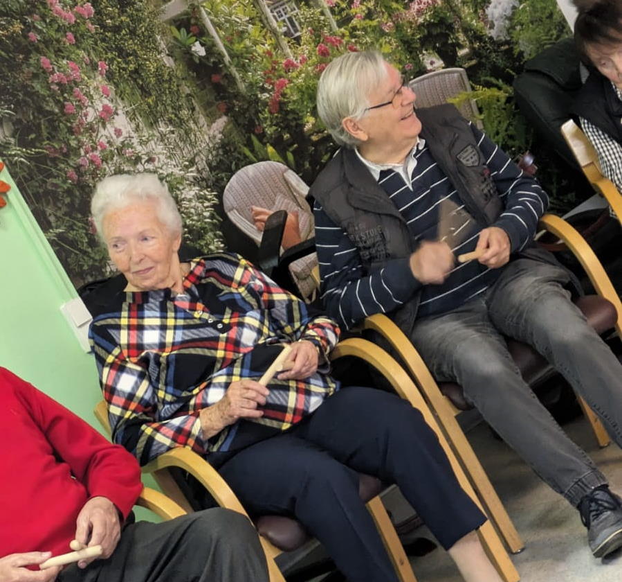 Wir überlegen uns immer wieder gern etwas Neues für unsere Gäste, um ein wenig Abwechslung in den Alltag zu bringen. Diese Woche durften sich unsere Gäste an einfachen rythmischen Instrumenten üben und gemeinsam zu verschiedenen Liedern spielen. Das brachte viel Freude und Schwung in den Vormittag. Besonders unsere dementen Gäste, die sich mit Worten nicht mehr verständigen können, profitieren von diesem musikalischen Angebot.
