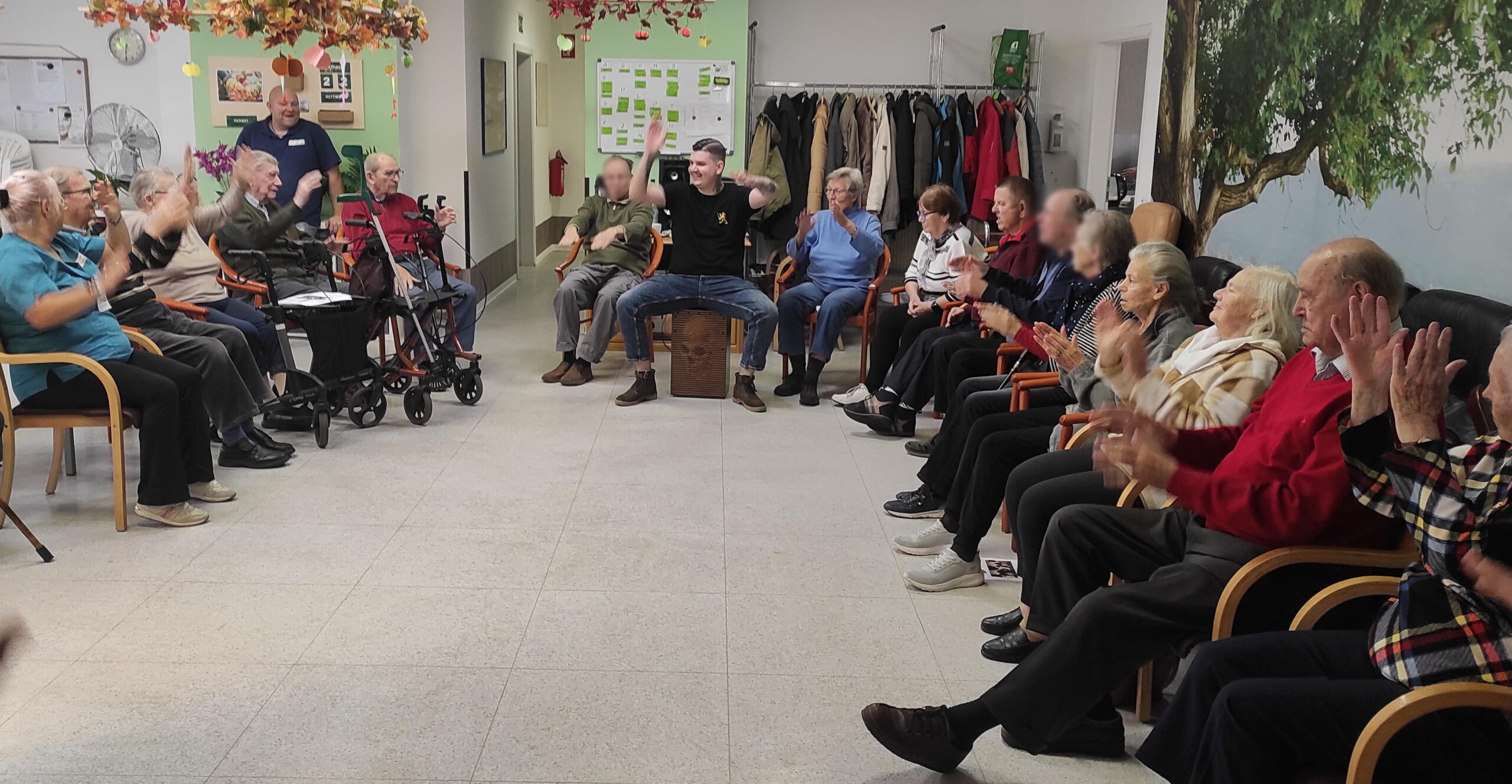 Wir überlegen uns immer wieder gern etwas Neues für unsere Gäste, um ein wenig Abwechslung in den Alltag zu bringen. Diese Woche durften sich unsere Gäste an einfachen rythmischen Instrumenten üben und gemeinsam zu verschiedenen Liedern spielen. Das brachte viel Freude und Schwung in den Vormittag. Besonders unsere dementen Gäste, die sich mit Worten nicht mehr verständigen können, profitieren von diesem musikalischen Angebot.