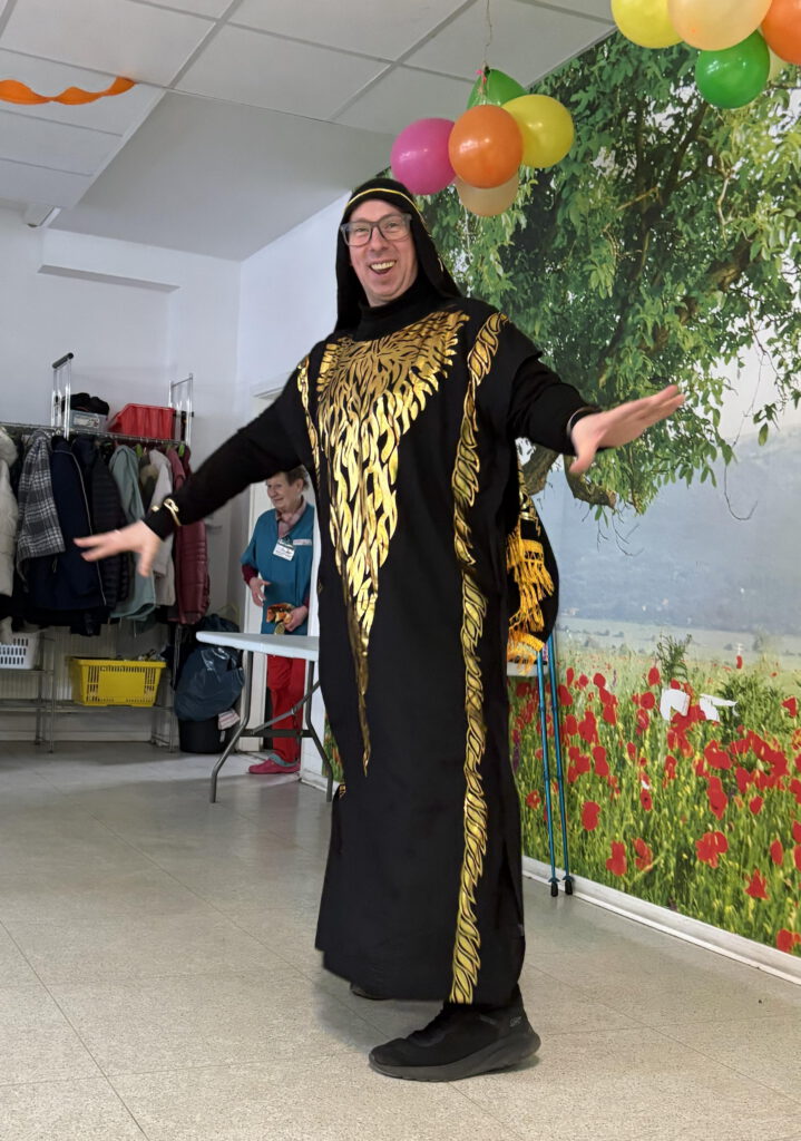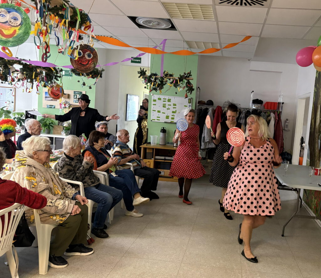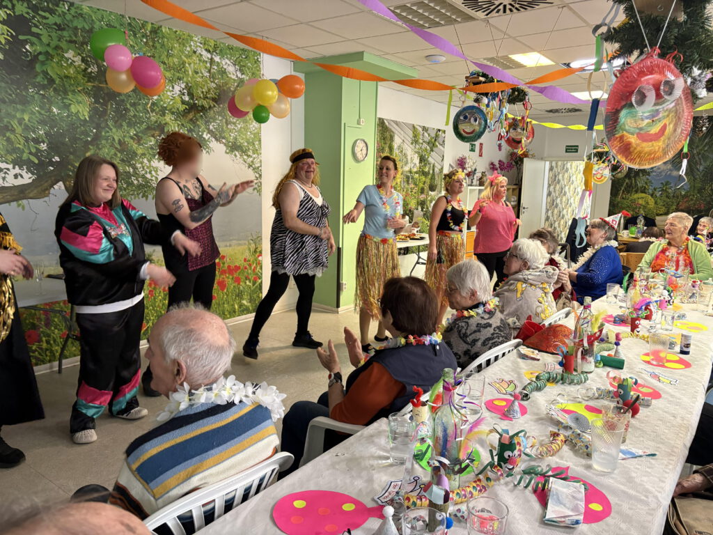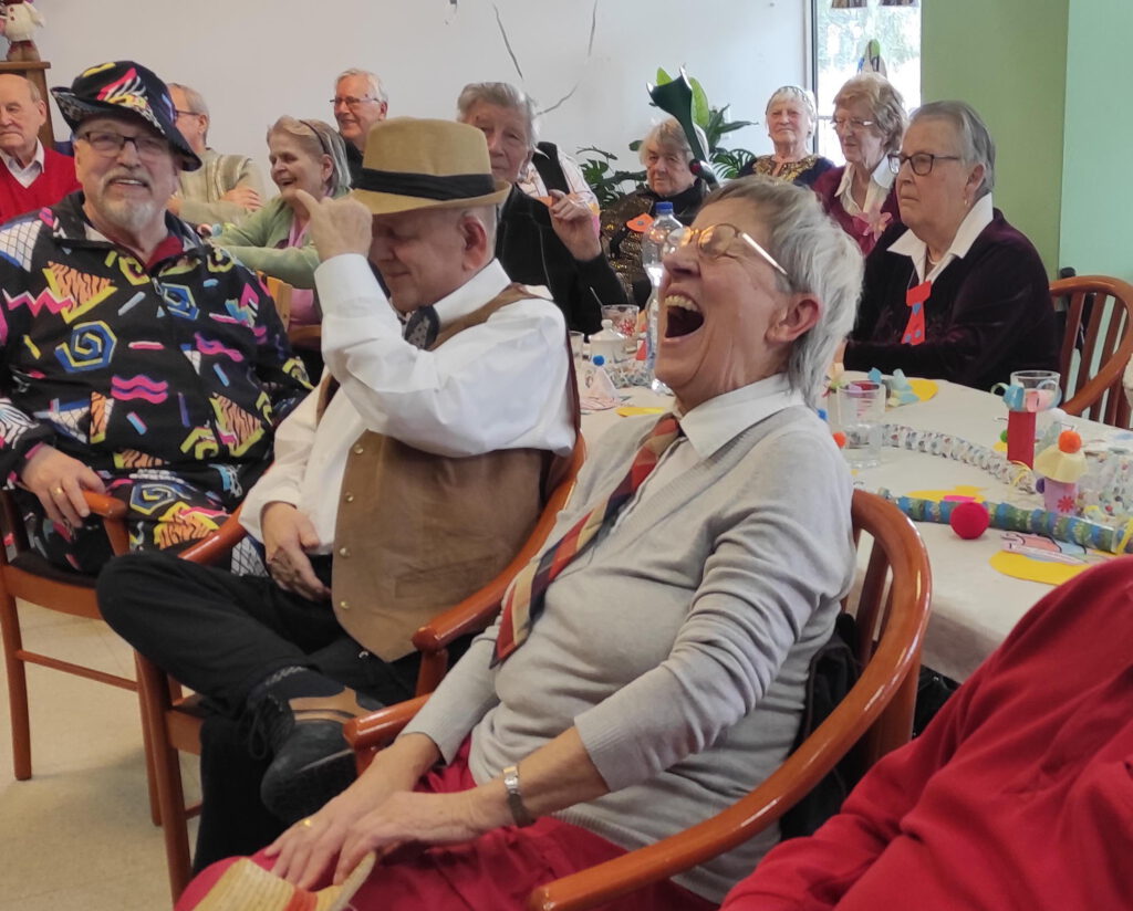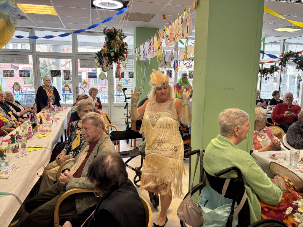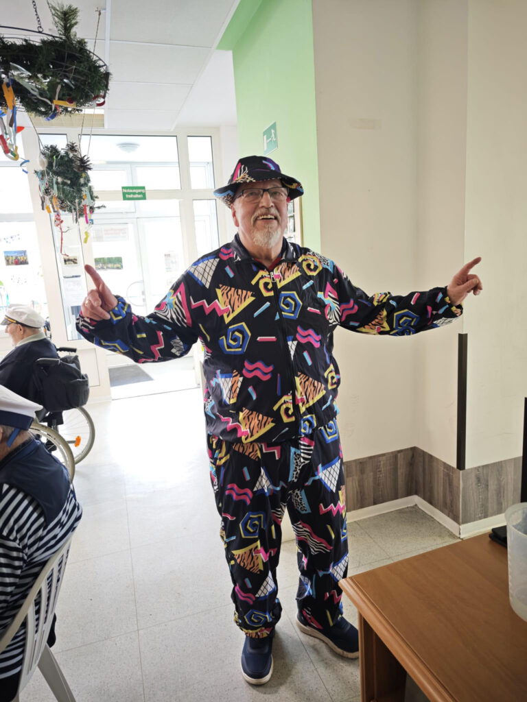 So lässt sich unser diesjähriges Faschingsfest am besten beschreiben. Es wurde ausgiebig getanzt, geschunkelt, mitgesungen und viel gelacht. Das hat uns mal wieder gezeigt: Lebensfreude kennt kein Alter! Unser Musiker Olli hat den musikalischen Vormittag gestaltet und unsere Gäste von den Stühlen geholt. Neben der Polonaise wurde auch das Gute Laune Lied getanzt. Als Höhepunkt unserer Faschingsfeier hatten wir eine Modenschau für unsere Gäste vorbereitet mit Kostümen aus den 20ern, 50ern, 70ern, 80ern und einigen zeitlosen Modeschöpfungen. Aber nicht nur die Mitarbeiter hatten sich verkleidet. Unsere Gäste zeigten viel Kreativität bei ihren diesjährigen Kostümen. Aber nicht nur das Programm hat unseren Gästen gefallen, sondern auch das leckere Essen, das mit Liebe zubereitet wurde.