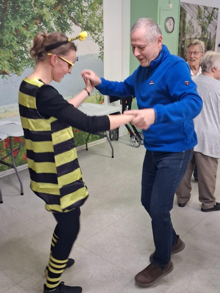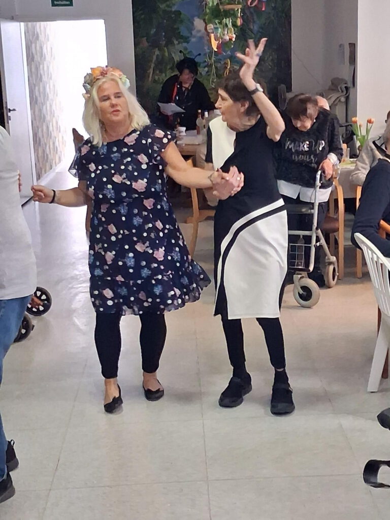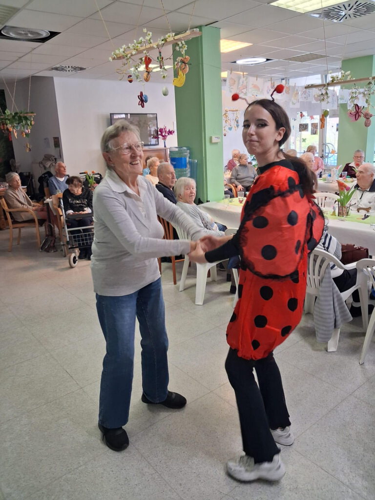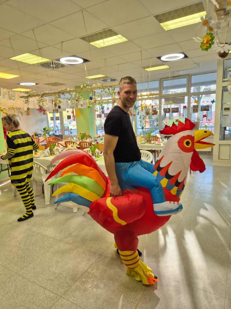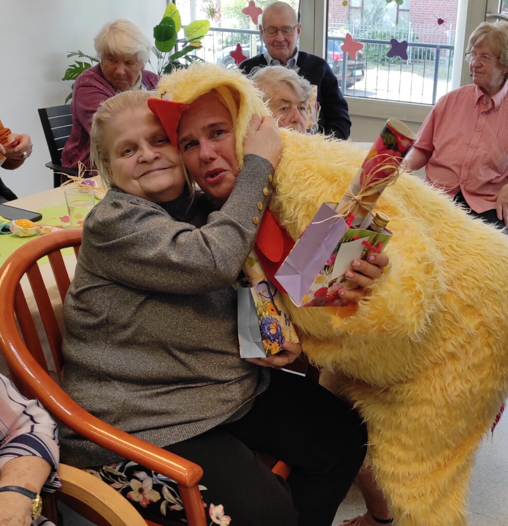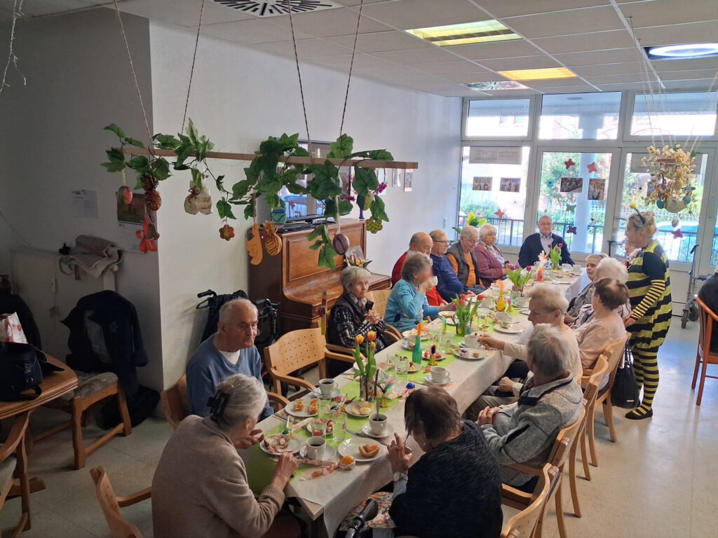 Am vergangenen Freitag haben wir unser Frühlingsfest gefeiert mit Tulpen, Bienen, Schmetterlingen, Hasen und Küken. Wir haben – wie immer – ordentlich das Tanzbein geschwungen. Selbst Gäste, die im Rollstuhl sitzen, sind auf unseren Festen so motiviert und stehen auf um ein paar Schritte zu tanzen. Es wurde geschunkelt und gesungen: Frühlingslieder, Schlager und Berliner Lieder – für jeden war etwas dabei. Das Team der Tagespflege am Seddinsee hatte wieder viele Programmpunkte vorbereitet. Dazu gehörten Sketche, Tänze, Spiele und Gedichte. Auch das Essen ließ keine Wünsche offen: ein großes Frühstücksbuffet mit gefärbten Eiern, Lachs- und Mettbrötchen; ein üppiges Mittagessen mit Kartoffeln, Spargelgemüse und Schnitzel; zum Nachtisch einen großen Schwedeneisbecher; zum Kaffee ein großes Stück Schwarzwälder Kirschtorte. Und ganz zum Schluss kam natürlich noch der Osterhase vorbei und hat Geschenke da gelassen. Unsere Gäste strahlten und gingen mit einem Lächeln nach Hause.