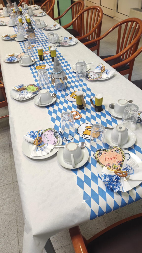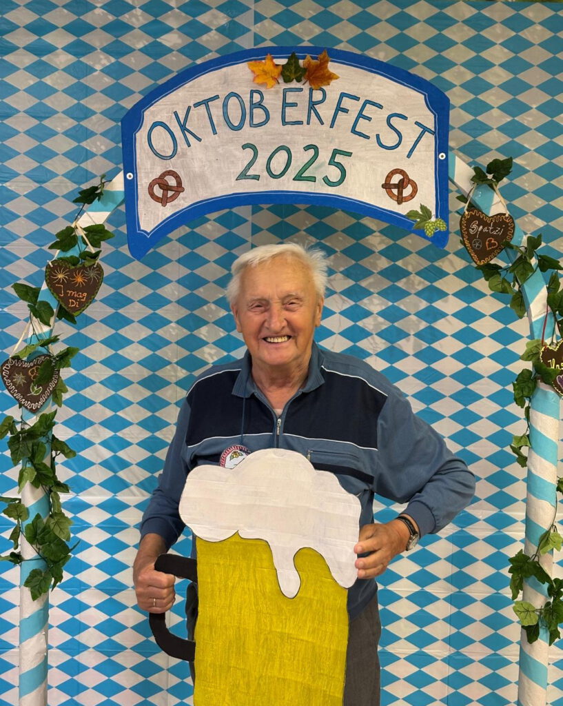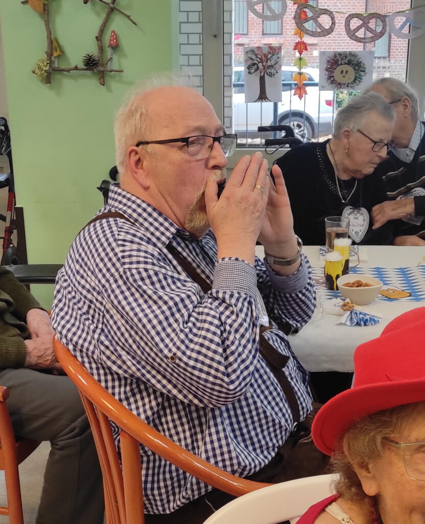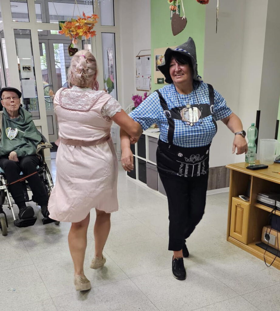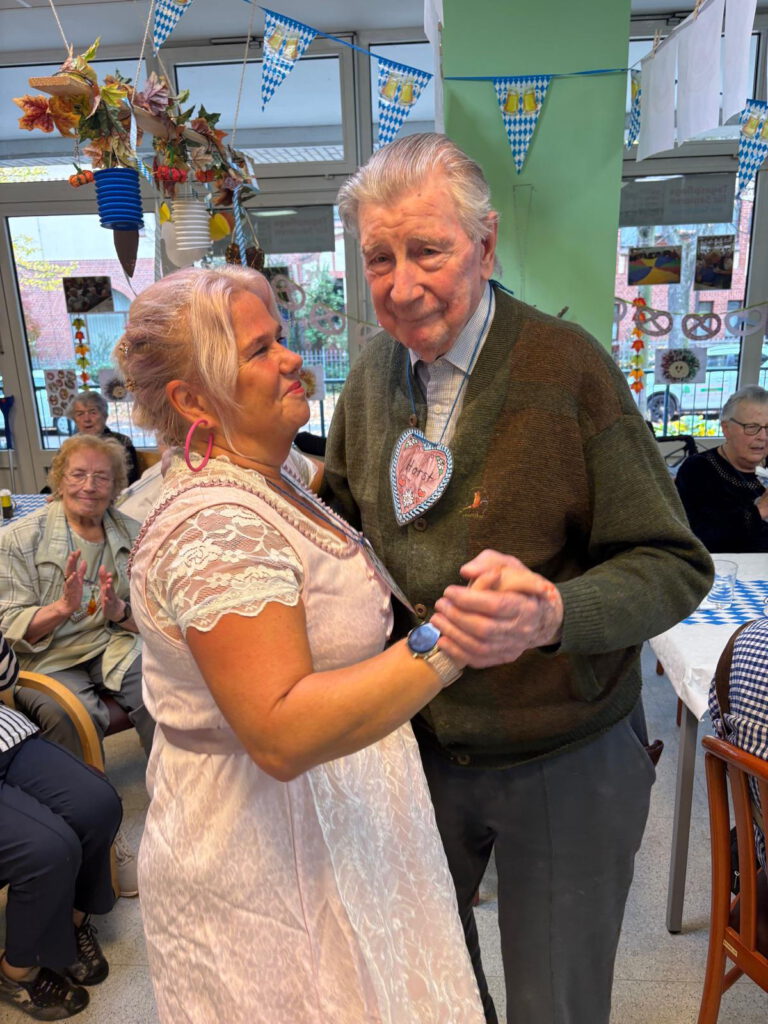 Wie jedes Jahr hat sich unsere Tagespflege für einen fröhlichen Tag in ein kleines Stück Bayern verwandelt. Wir haben unser Oktoberfest gefeiert, mit allem was dazu gehört: Dirndl, Lederhosen, Bier und Brezeln. Unser Musiker Olli hat wieder für super Stimmung gesorgt und unsere Gäste von den Stühlen geholt. Nach einem schwungvollen Vormittag mit Bier und Brezeln, folgte ein echt bayerisches Mittagessen mit Leberkäs, Kartoffelsalat und Bayrischer Creme. Ein besonderes Highlight in diesem Jahr war die Tanzeinlage des Teams, das extra für diesen Anlass einen bayerischen Volkstanz einstudiert hat.