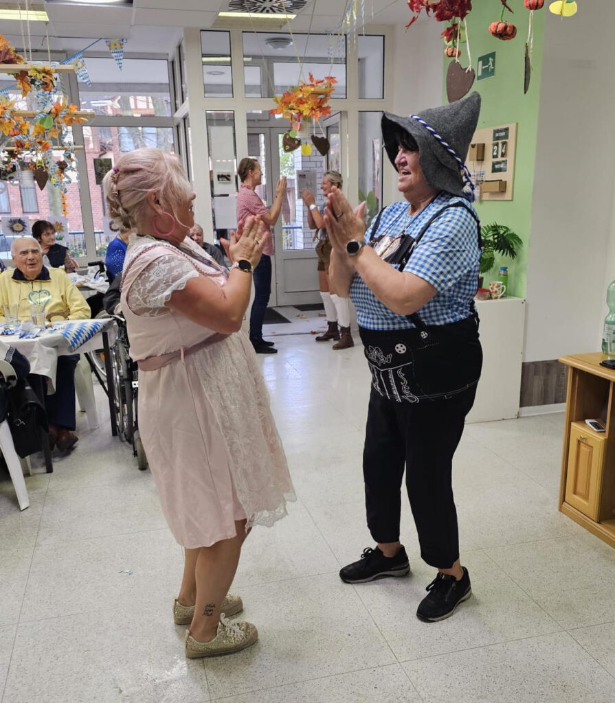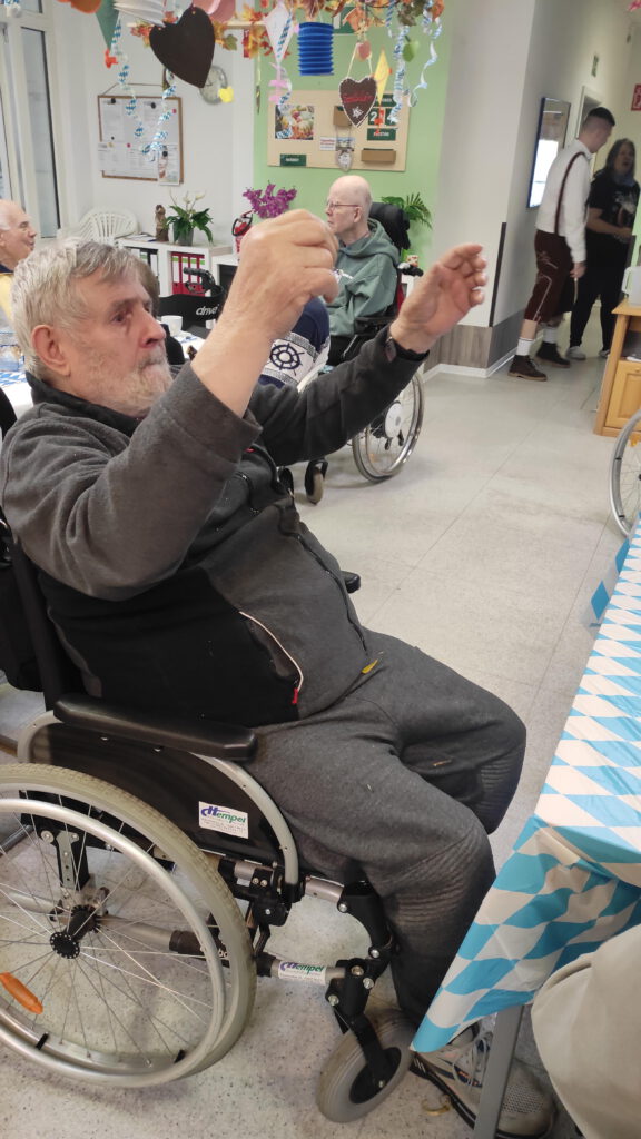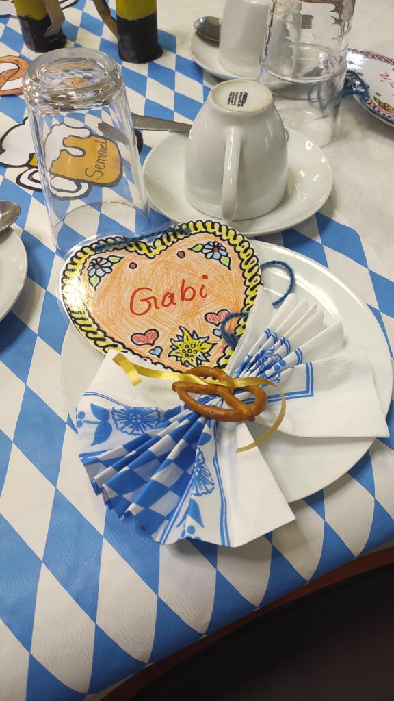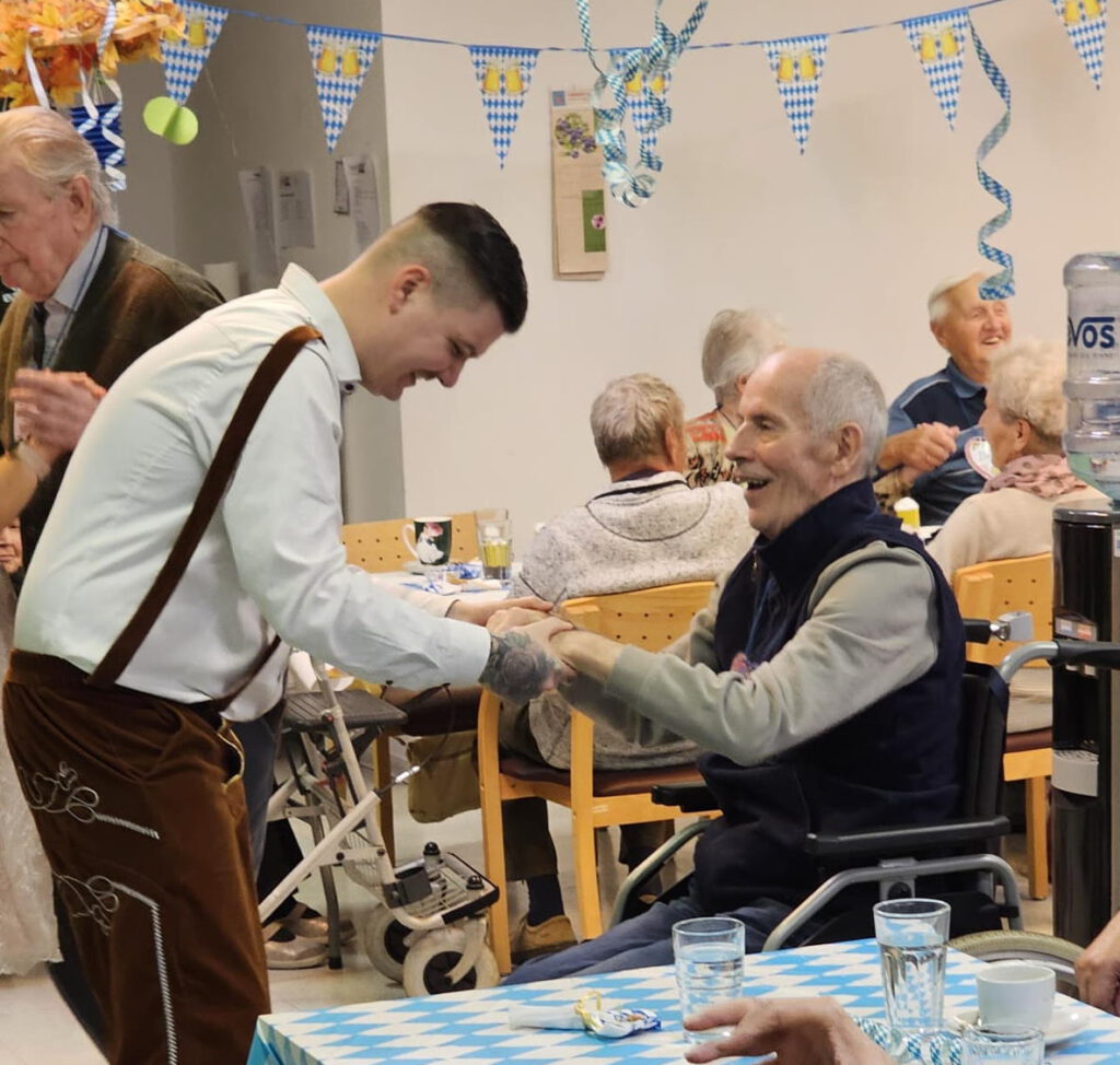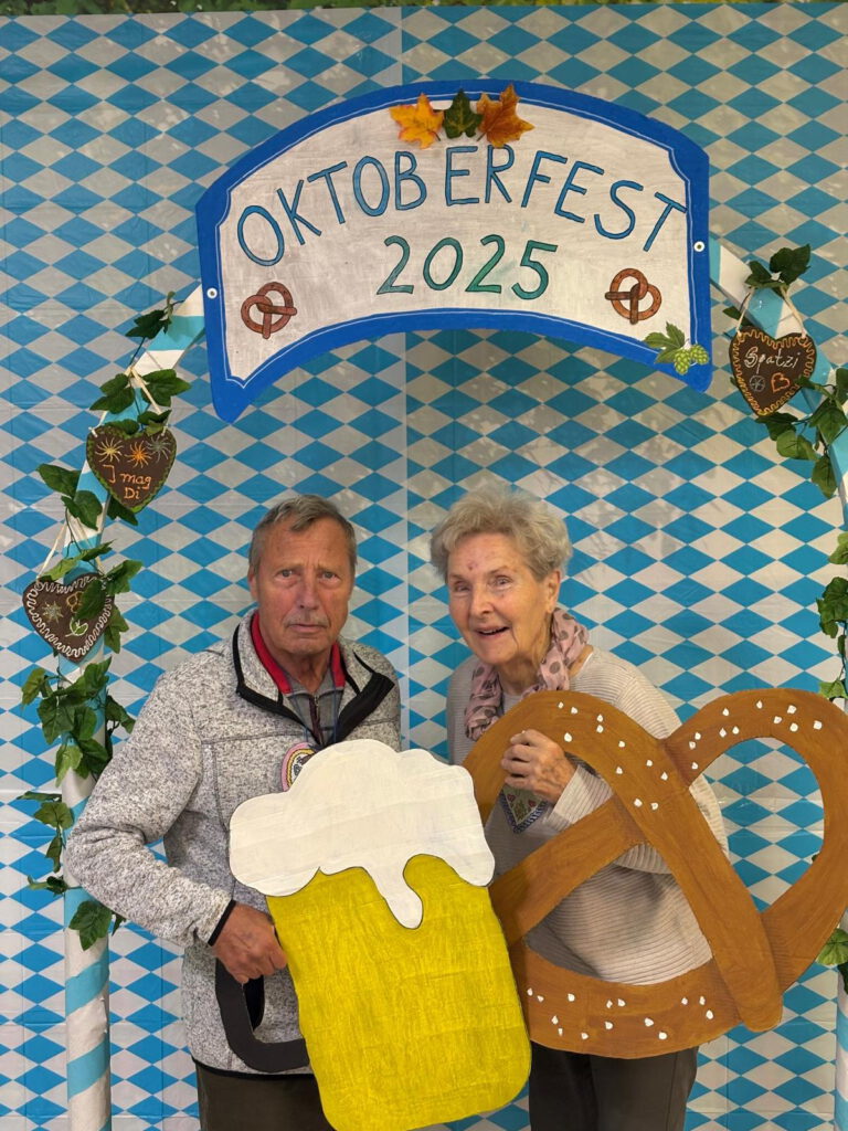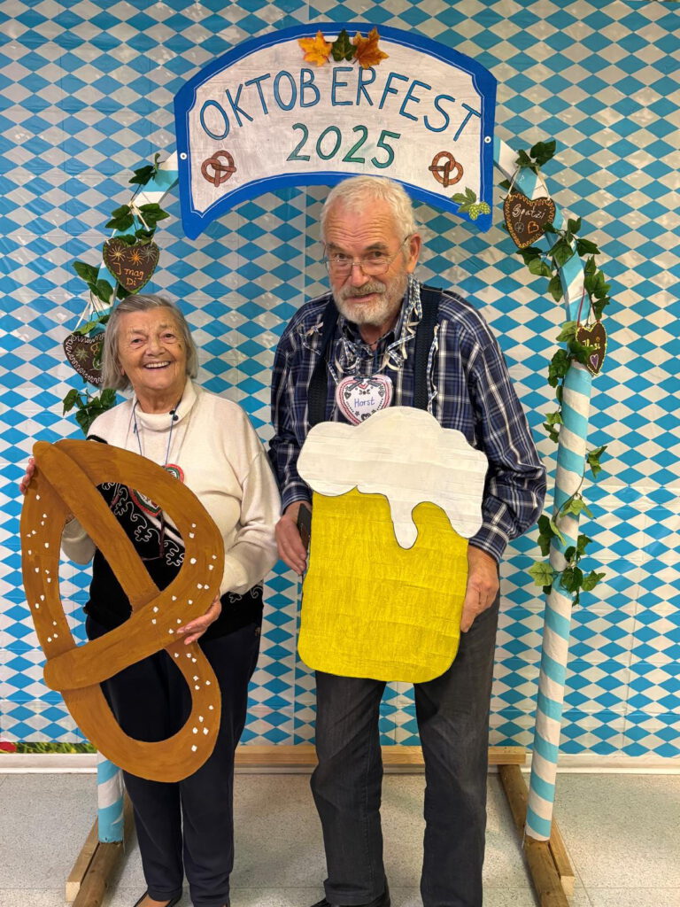 Wie jedes Jahr hat sich unsere Tagespflege für einen fröhlichen Tag in ein kleines Stück Bayern verwandelt. Wir haben unser Oktoberfest gefeiert, mit allem was dazu gehört: Dirndl, Lederhosen, Bier und Brezeln. Unser Musiker Olli hat wieder für super Stimmung gesorgt und unsere Gäste von den Stühlen geholt. Nach einem schwungvollen Vormittag mit Bier und Brezeln, folgte ein echt bayerisches Mittagessen mit Leberkäs, Kartoffelsalat und Bayrischer Creme. Ein besonderes Highlight in diesem Jahr war die Tanzeinlage des Teams, das extra für diesen Anlass einen bayerischen Volkstanz einstudiert hat.